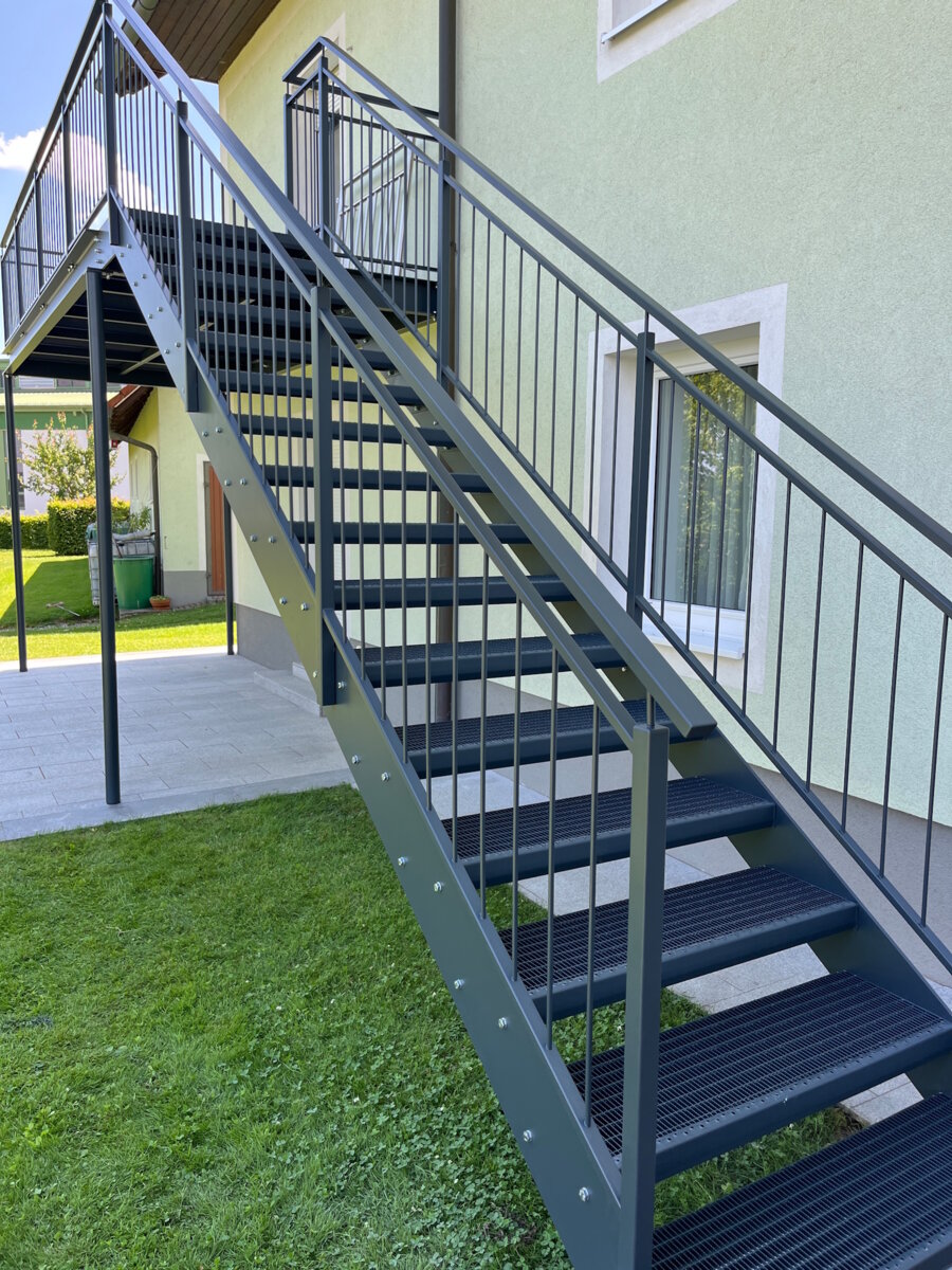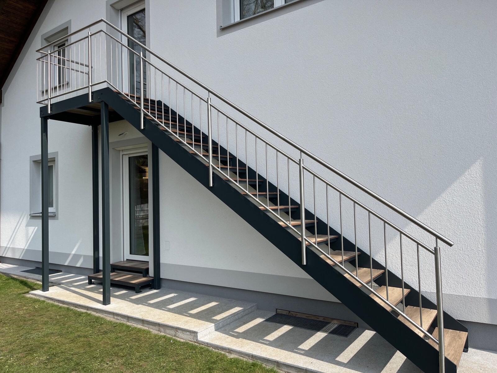 Eine Treppe aus Stahl oder Edelstahl lässt sich optisch perfekt ins Gesamtbild integrieren und nimmt nicht mehr Platz ein als unbedingt nötig.